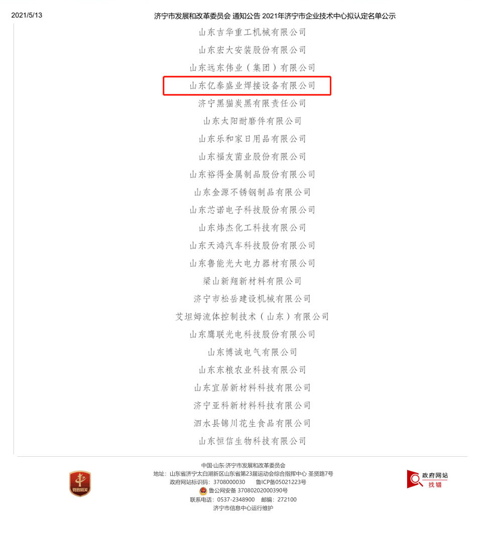 2021年濟寧市企業(yè)技術(shù)中心擬認(rèn)定名單公示
